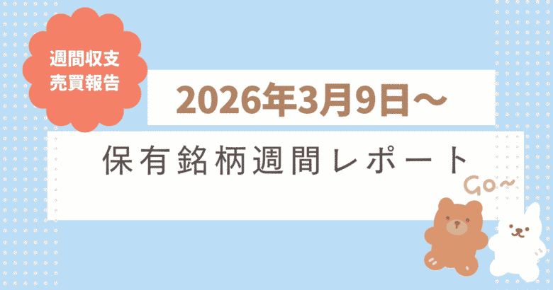 2026年3月9日(月)~3月13日(金)の個人保有株の週間損益は先週比-558万円と大幅にマイナス、年初来比で+1,752万円となりました。保有株は大幅下落しました。日経平均は週間で-1,801円(-3.3%)、トピックス指数は-87pt(-2.4%)となっています。イランとの戦争長期化と原油価格上昇で株価が暴落しました。