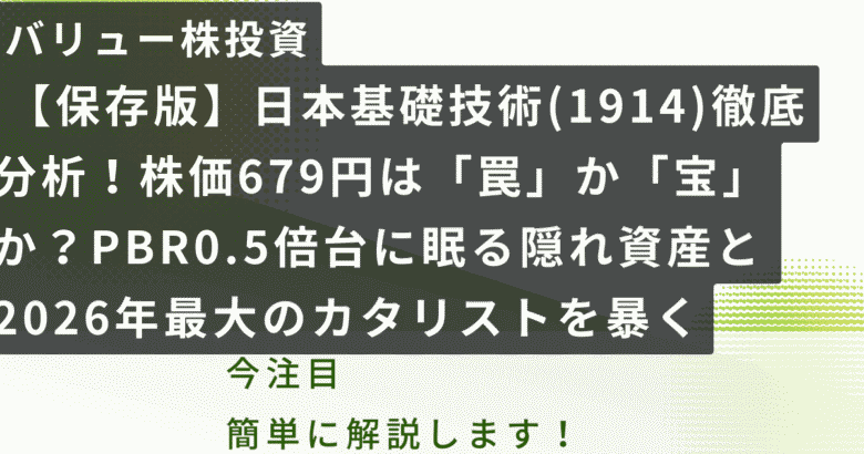 今、日本基礎技術は、表面的な業績数字だけを見れば「売り」に見えるかもしれません。しかし、貸借対照表(バランスシート)の奥底にある「資産価値」と、2026年に迫る「構造改革(カタリスト)」を紐解けば、ここが千載一遇の仕込み場である可能性が見えてきます。