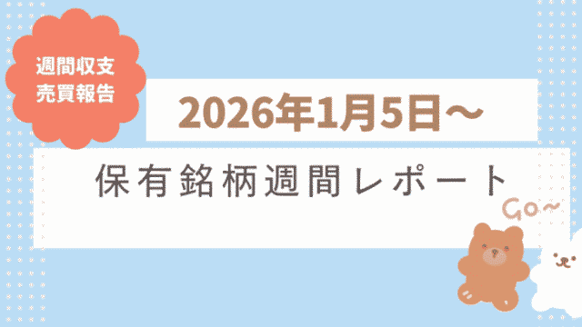 週間報告 保有株週間レポート 2026年1月5~9日 先週からの損益状況 2026年1月5日(月)~2026年1月9日(金)の個人保有株式の週間損益は先週比+669万円、年初来比で+669万円となりました。保有銘柄は宮崎太陽銀行と北海道瓦斯が上昇しました。日経平均は週間で+1,600円(+3.... 2026.01.10 週間報告