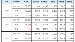 期初予測の売上は強気で予想されることが多いですね