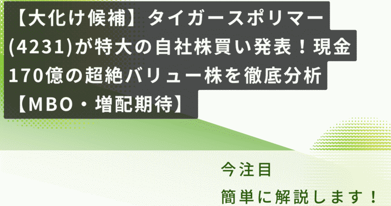 その銘柄とは……ズバリ、**タイガースポリマー(証券コード:4231)**です!