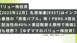 - 現在の株価は4,515円、PER7.2、PBR 1.22、自己資本比率35.7%、配当利回り4.87%