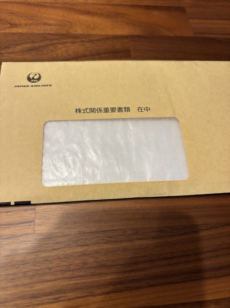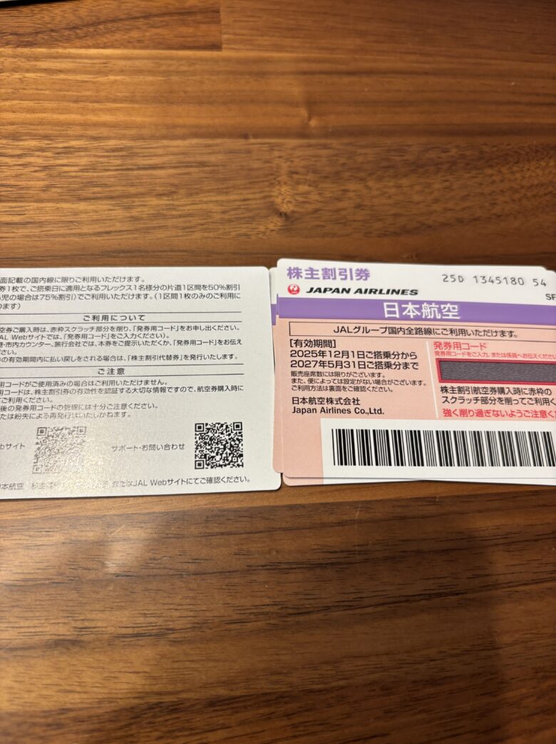9月末権利確定銘柄【日本航空】の株主優待が2025年11月12日(水)に簡易書留にて到着しました。800株の保有なので株主割引券4枚です。